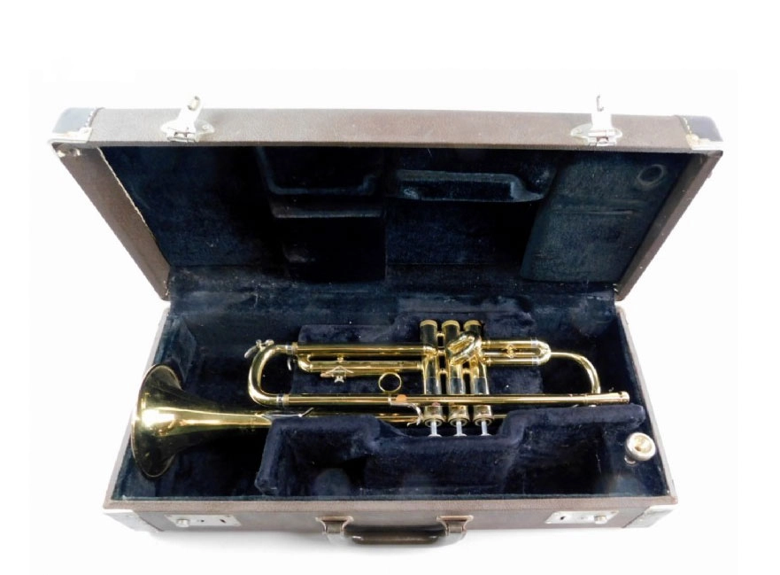 2. بدنه: بدنه ترومپت معمولاً از برنج ساخته شده و دارای لولهای است که به شکل مارپیچ طراحی شده است.